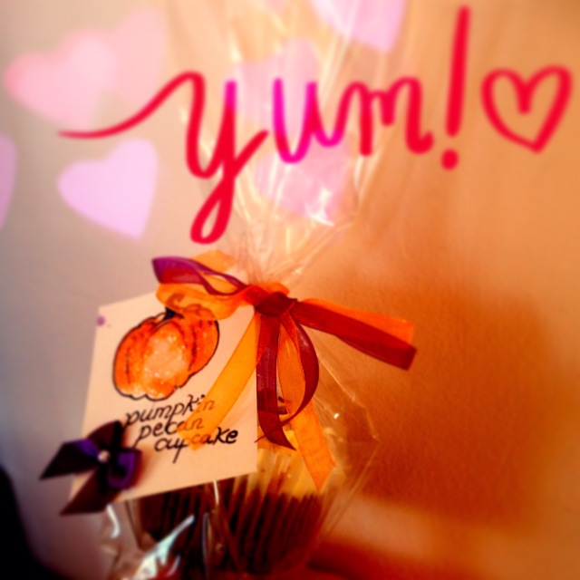 Putting cupcakes in treat bags with ribbons and handmade labels is a sweet halloween activity and make for a good little gift… 😀