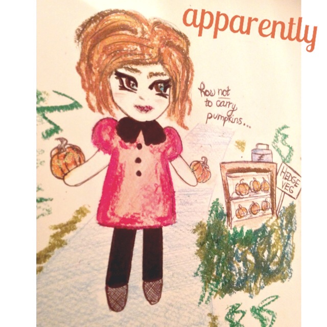 A little illustration of the scenario. I should also probably point out that I was wearing wedged shoe boots, perhaps not the most appropriate footwear to go a pumpkin foraging. However, not as outlandish as the shoes that Courtney Stodden would wear to a pumpkin patch photo shoot.